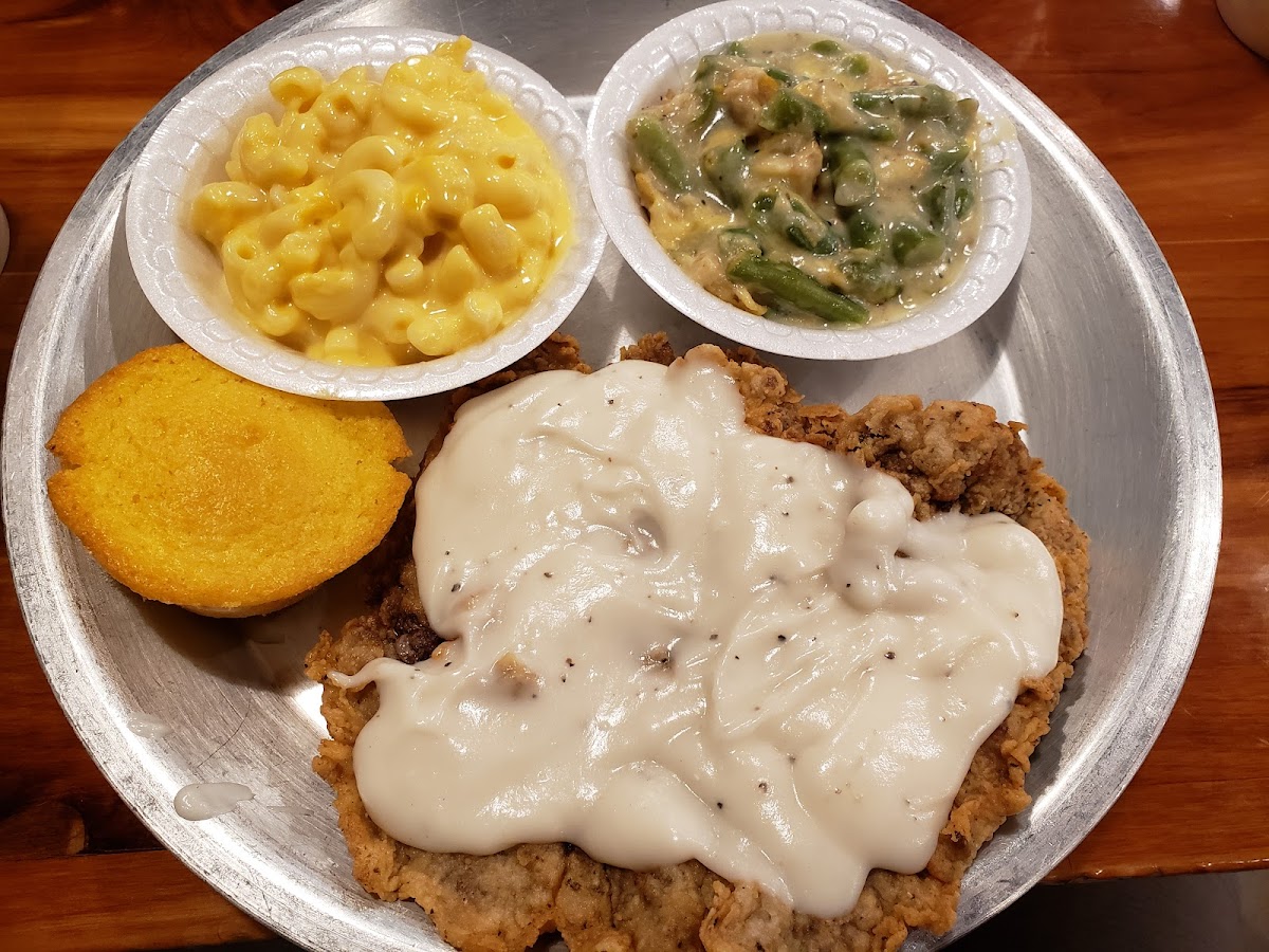 The restaurant was very clean. Tables were well stocked with condiments and napkins. Everyone was super friendly! Very quick service. The food was perfect! The cheese fries were amazing! Salad and coleslaw were great! Okra was the best we've had around. The chicken fried chicken was very juicy and tender not dry at all . Top it all off Blue Bell Ice cream shake! Perfect ! I would totally recommend coming here and will definitely be coming back!