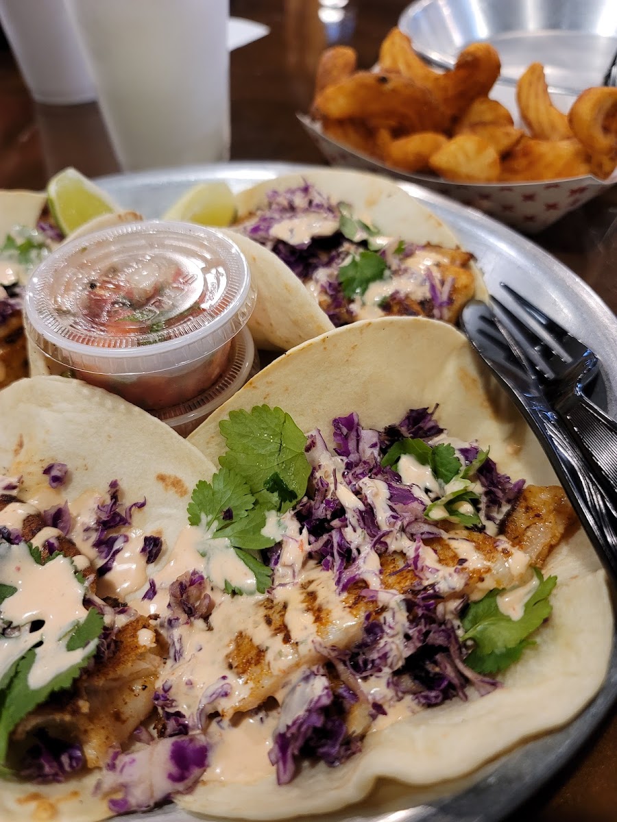 Stopped by on a whim after helping my buddy shave his tires at a local tire shop. Was greeted by the cashier in the front and I asked if they would give me recommendations as a first timer there. Was given options of the fish tacos, burrito supreme (more like smothered chimichanga he said), and the queso burger. Finished it off with a not-dry Mexican chocolate cake (looks like it was layered as oatmeal, brownie, and cake). No waiting time really since we are past peak lunch time and middle of nowhere haha. Overall the food was not bad with our highest rating going to the fish tacos (8/10) as it was technically enough for me to split our 2 tacos into 4 in a way . The queso burger seems pretty standard just with queso instead of your usual standard fare with American cheese (plus it could just be I'm not too fond of cheeses in general). The burrito supreme initially reminded me of taco bell food in which I lol'd at first, but after a few more bites with the salsa, I thought it was also above par with like a 6. We did also try the green bean casserole (which i know not a lot of people like) but for once it actually looked fresh and not the sorry looking discolored green beans from a can. I would most likely get that side again with something like the chicken fried steak frfr. There are a good amount of dishes to choose from, so maybe in the future I will return and try them if I happen to stop by for some reason in Wharton . Thank you friends
